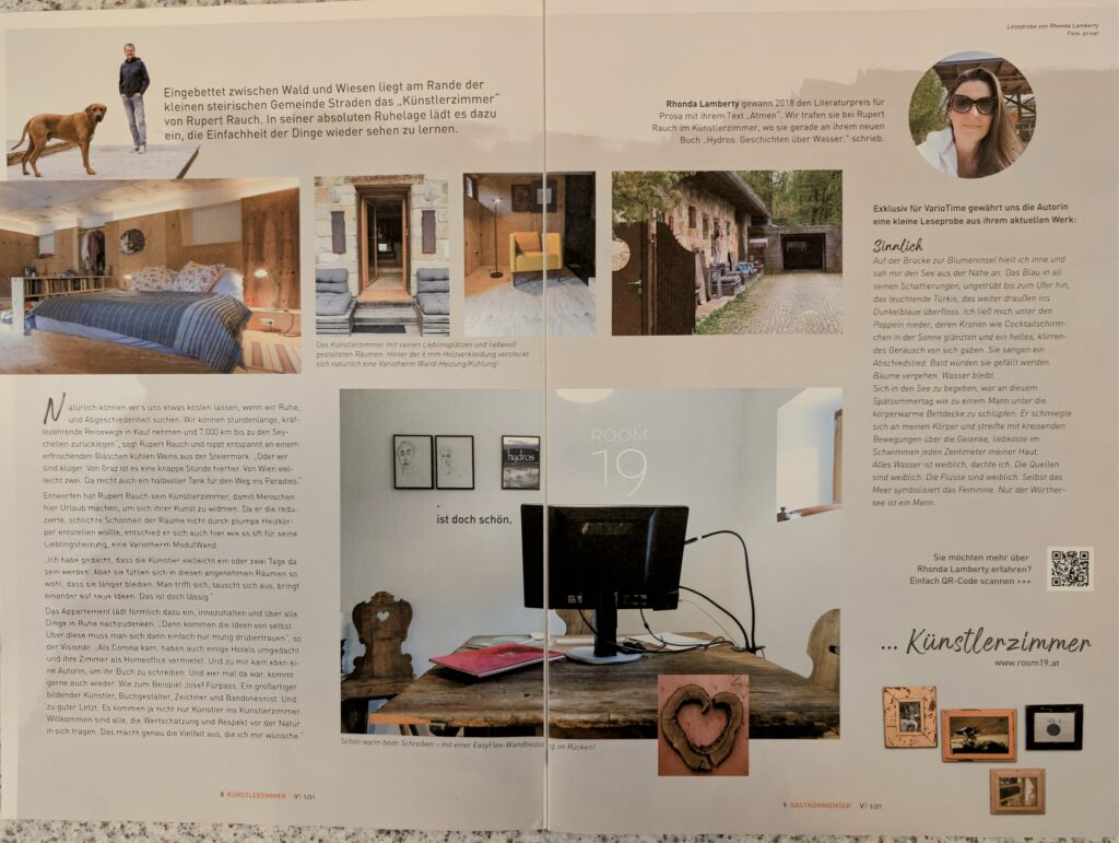 Dieses Autorenporträt für das Magazin “variotime” entstand während meines Aufenthaltes im Künstlerzimmer Straden, 2021. In Arbeit war mein Buch “hydros”