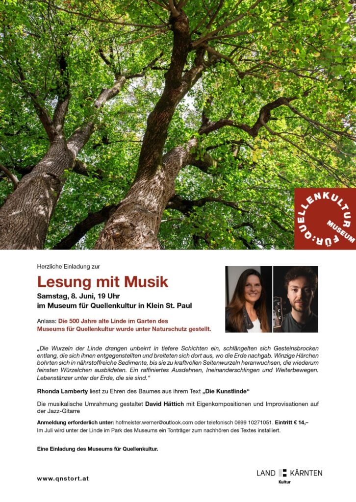 Lesung “Die Kunstlinde” im Museum für Quellenkultur in Klein St. Paul, Juni 2024