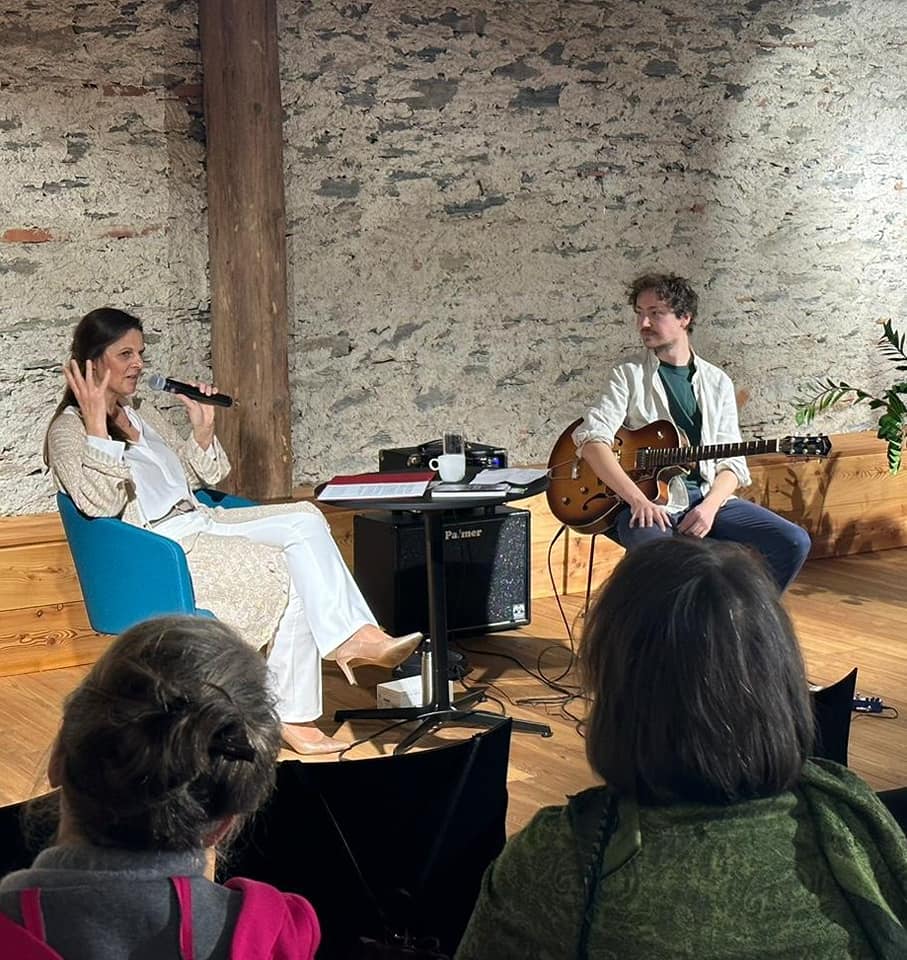 Lyrik & Prosa mit Jazzgitarre. Im Kunstbahnhof Wörthersee in Velden sind wir als Trio (Brigitta Huemer, David Hättich, Rhonda Lamberty) aufgetreten., Oktober 2024