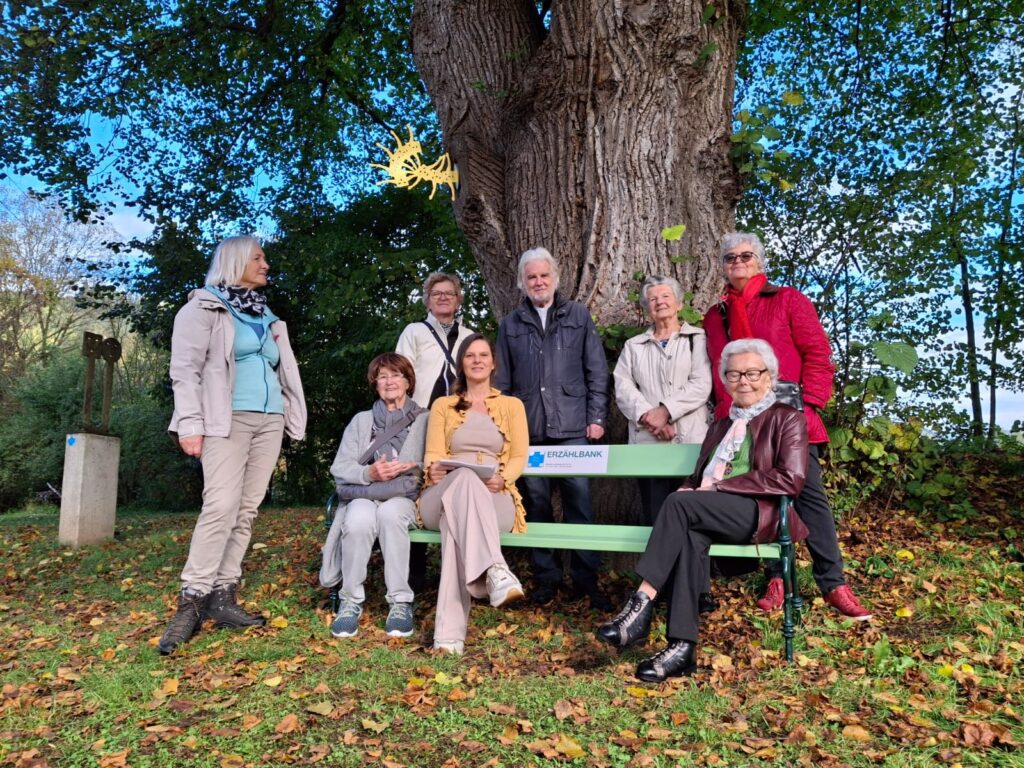 Bei der Eröffnung der Installation “Erzählbank & Zweig” habe ich für eine Besuchergruppe, spontan einen Auszug aus dem Text “die Kunstlinde” direkt unter dem 500 Jahre alten Baum gelesen.