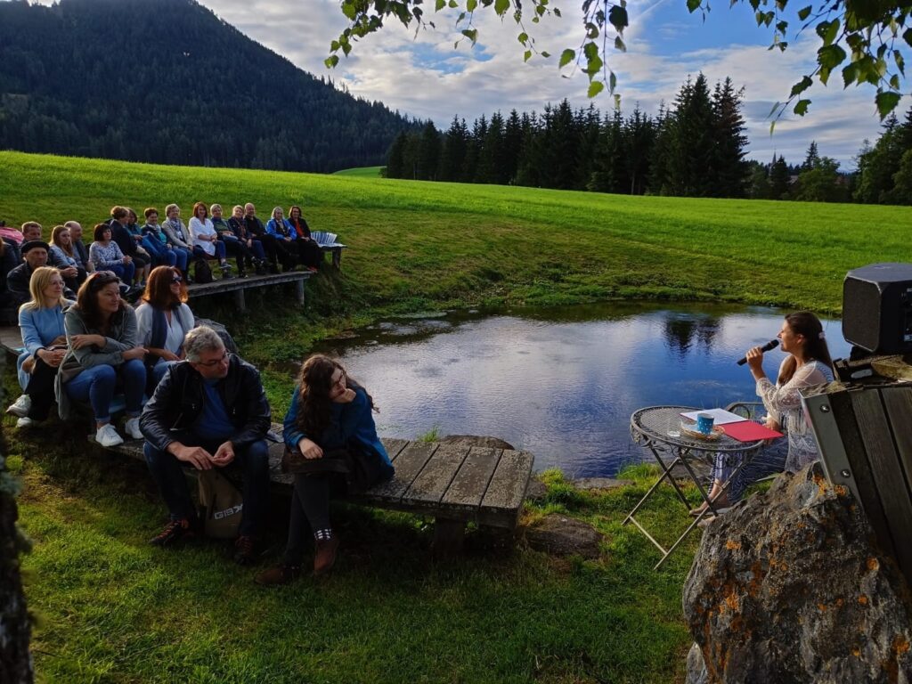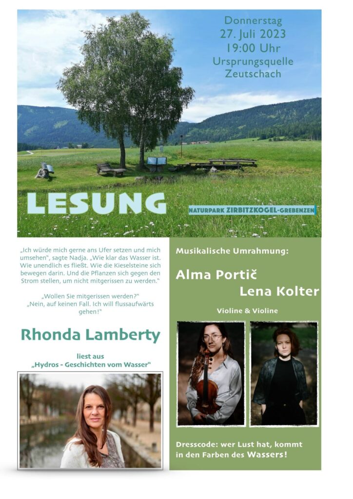 Eine Lesung an einem magischen Ort und zwar an der Ursprungsquelle Zeutschach im Naturpark Zirbitzkogel/Grebenzen. Mit den bezaubernden Violinen von Alma Portič und Lena Kolter.